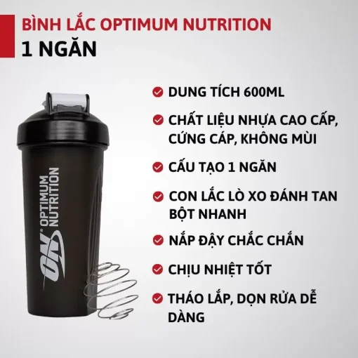 - Bình lắc ON với thiết kế hiện đại, phụ kiện năng động, tiện lợi dành riêng cho người tập thể thao, thể hình, dùng để mang nước uống khi tập, pha sữa mass, sữa whey Protein, tiện lợi hơn với phần lò xo. Dễ dàng pha sữa hơn, bột tan nhanh hơn.